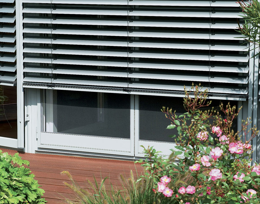 Außenraffstore und Jalousien Außenraffstore – präziser Blendschutz, warme Terrasse, stilvoller Look Vorteile: Heller Blendschutz: Steuerung
